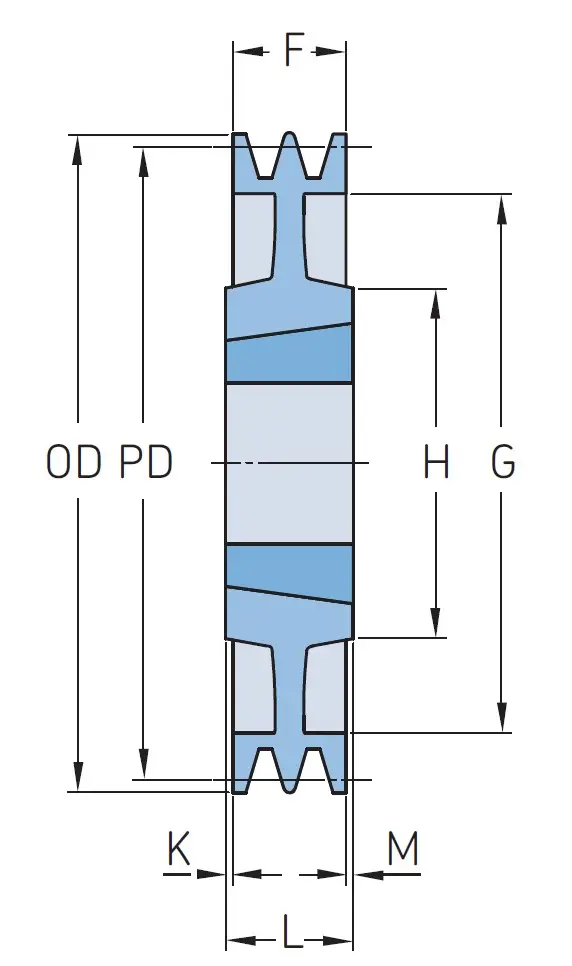 Този вид шайби са предназначени за “narrow wedge” ремъци – с по-тънък, но по-висок профил, което позволява предаване на по-високи мощности с по-малък диаметър.